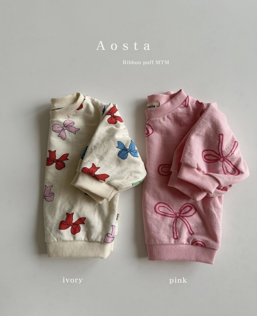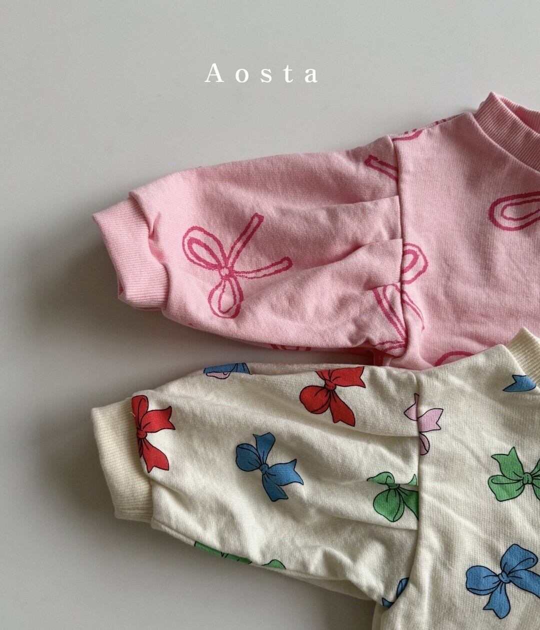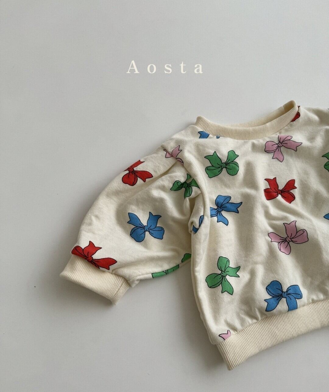 韓国子供服AOSTAアオスタ2024春新作リボントレーナースウェット