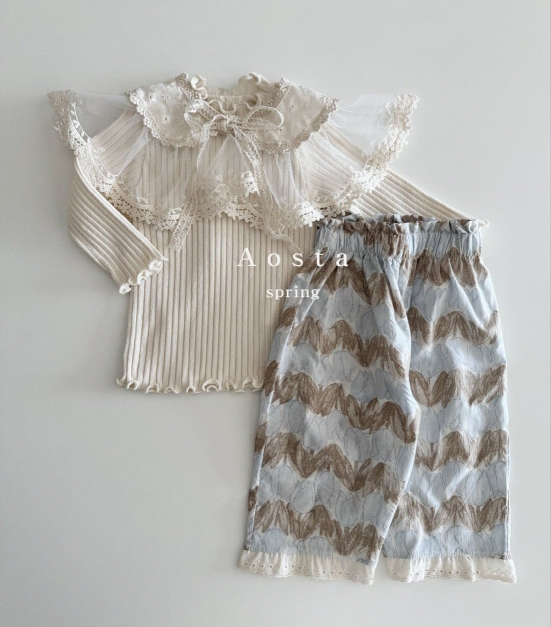 韓国子供服AOSTA2024春新作チューリップブラウスパンツセットアップ